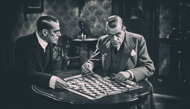 Karloff: (smirking) Solace, you say? Intriguing. Now, let's play it out. The library, a locked room of the mind, a labyrinth of words where the characters are confined by the architecture of dreams.
